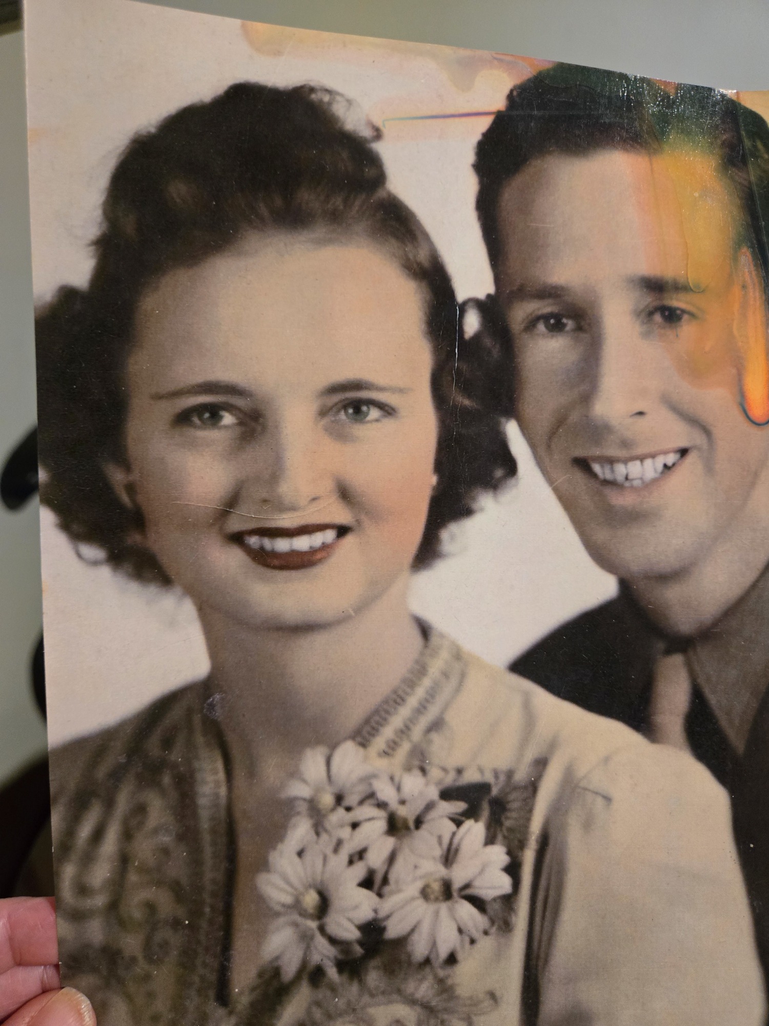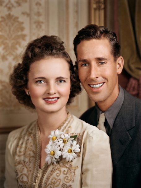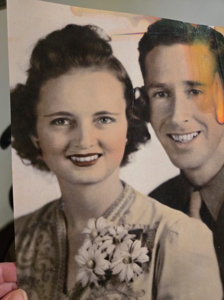 Damaged & Faded Grandparents Photo Restored. Period Correct Background Added